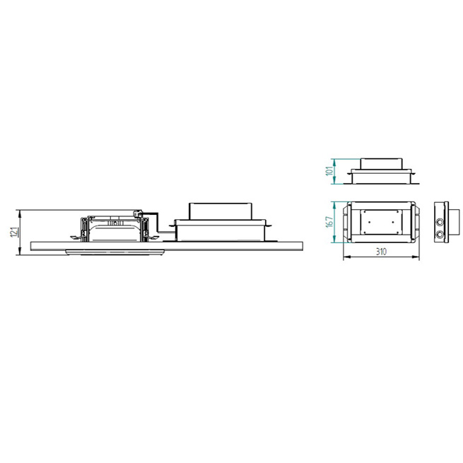 Montage: Deckeneinbau, passend für einen Standardausschnitt von 215 mm, geeignet für unterschiedliche Deckendicken mit einstellbaren Halteklammern zwischen 9,5 und 50 mm